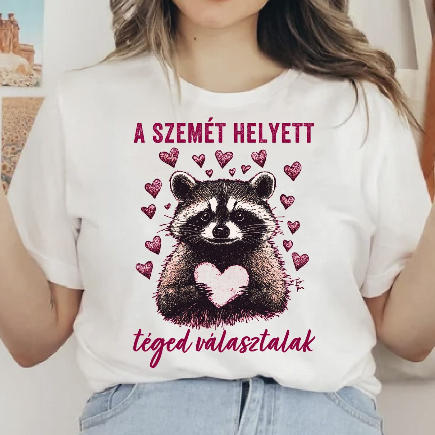 A szemét helyett téged választalak mosómedve szívecskével póló