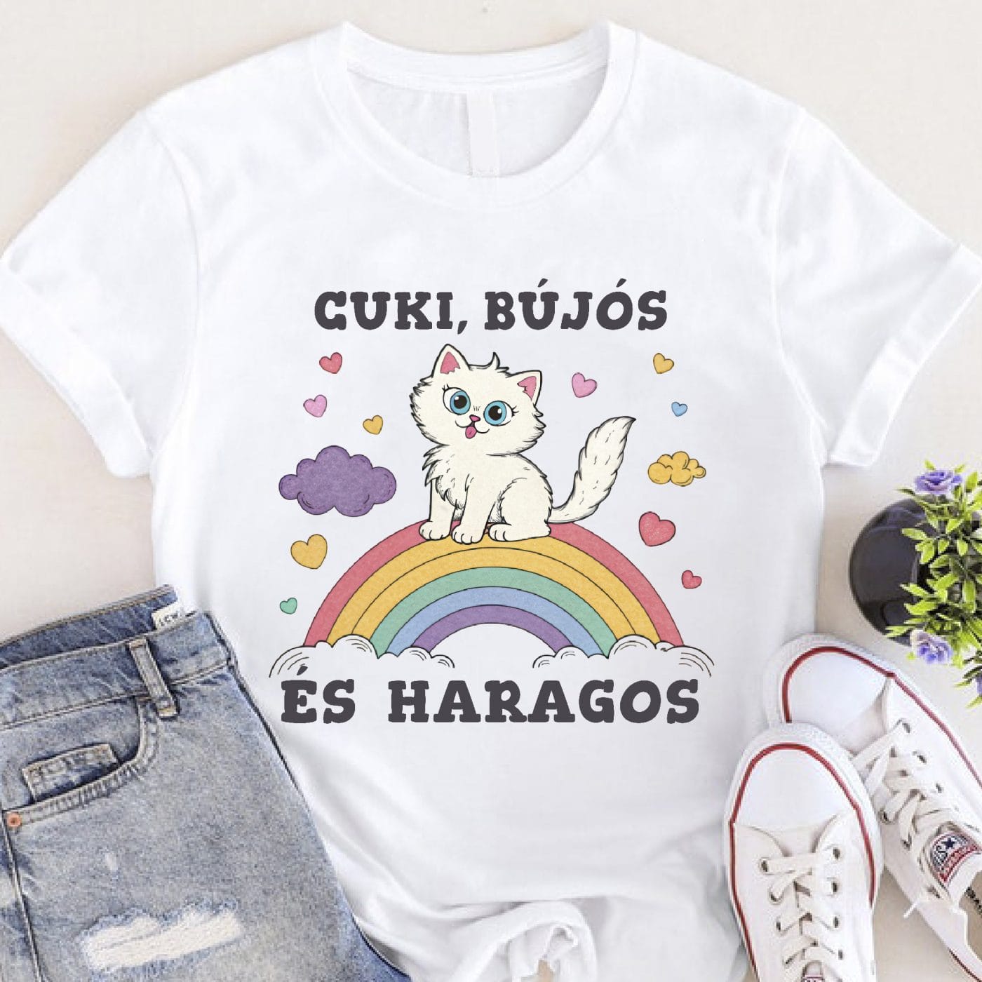 Cuki, bújós és haragos cicás póló